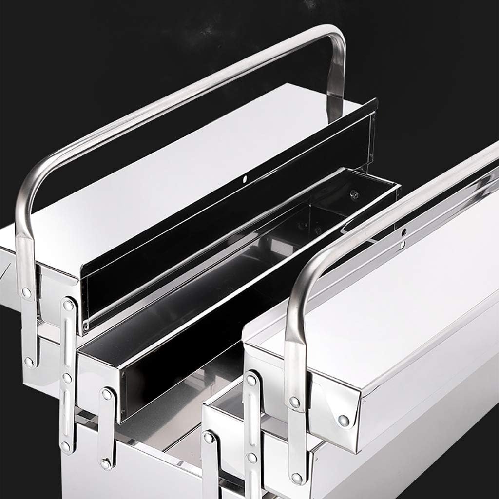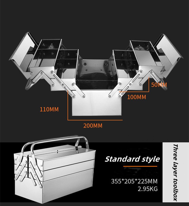 Keep all your tools perfectly organized with this 3-tier retractable stainless steel toolbox. Designed to save time and eliminate clutter, it gives you fast and easy access to every tool when you need it.