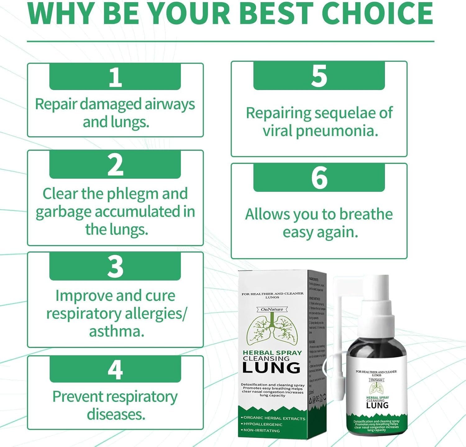 Additionally, the plant extracts help to soothe and heal the respiratory tract, promoting better respiratory function and overall lung health. By supporting the body’s natural cleansing processes, the spray helps improve breathing and enhance your respiratory well-being.