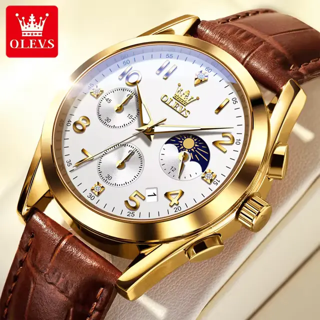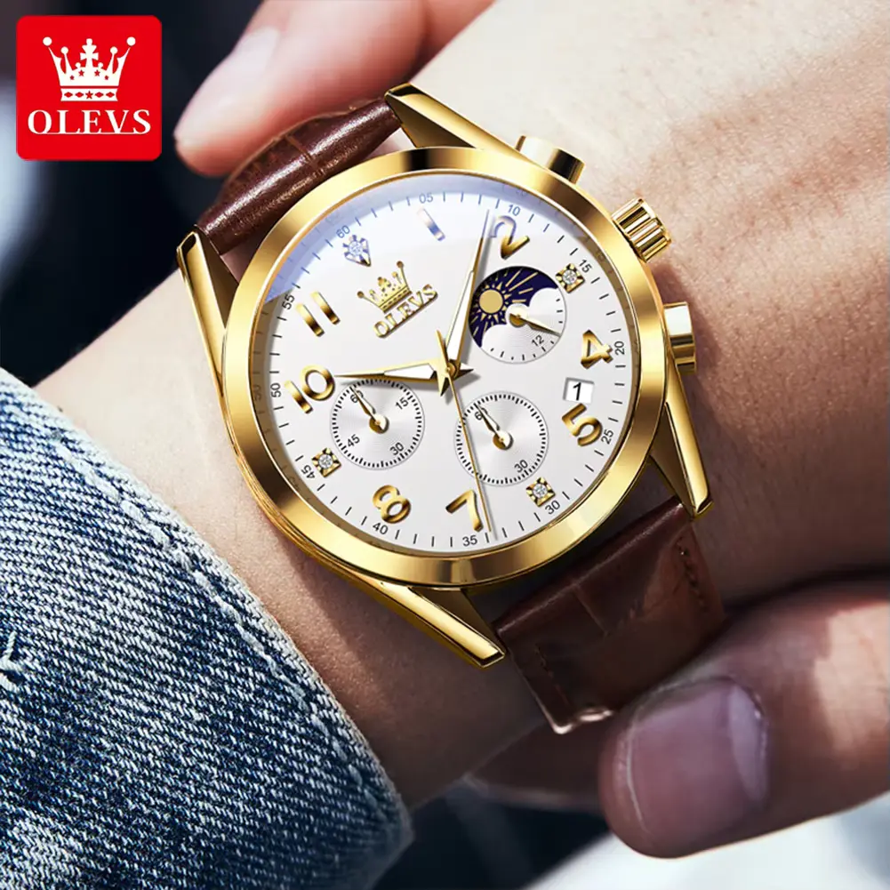 OLEVS Luxury Men's Watch: Multifunctional, Waterproof, Luminous, with Calendar and Moon Phase