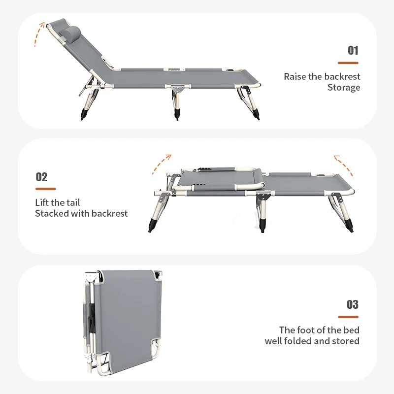 Outdoor Folding Lounge Chairs, Adjustable Sleeping Chair, Portable Foldable Bed for Camping